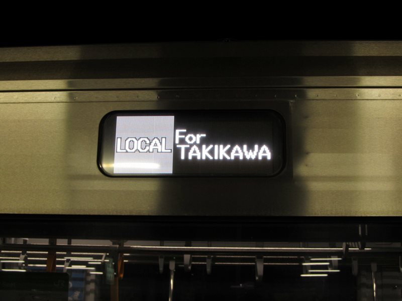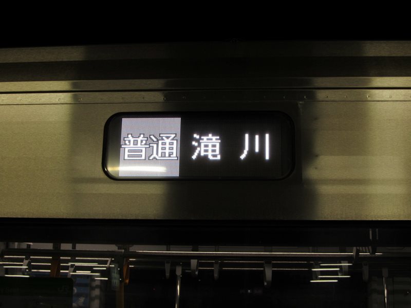 岩見沢駅で後ろの731系を切り離し中に撮影した「普通 滝川」の行先表示器。