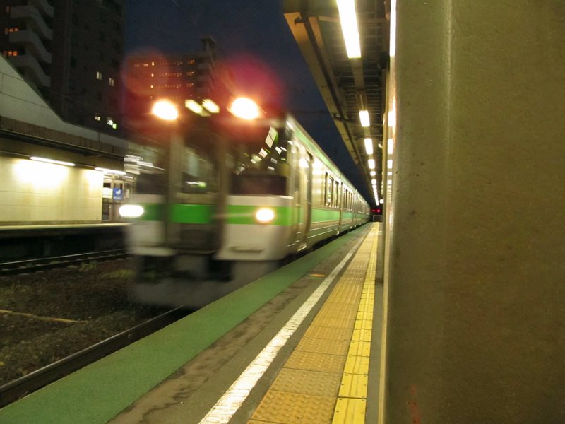 18:48、快速エアポート187号 手稲行 3955M(クモハ733-3204(2両目5号車) B-3204・6両編成)乗車。