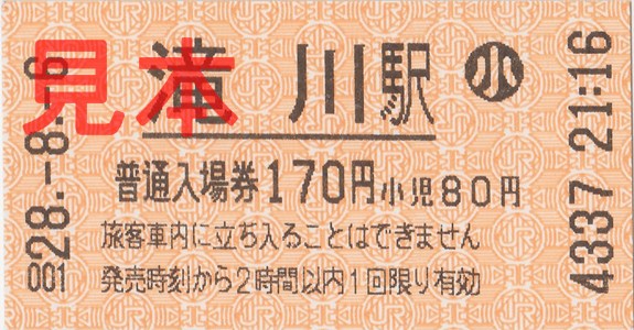 滝川駅入場券(券売機券・小児券)。