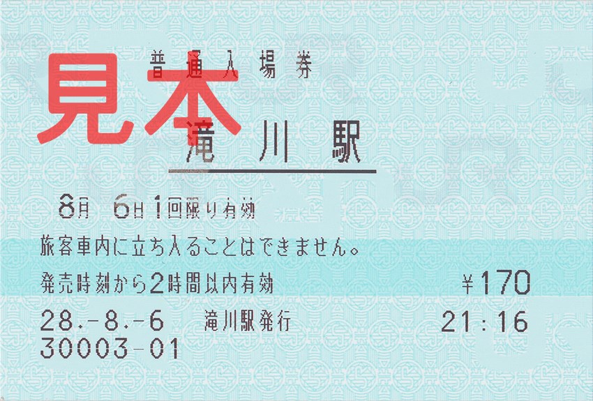 滝川駅入場券(マルス券)。
