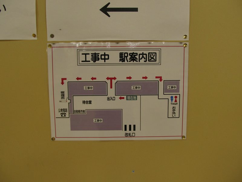 しかし駅舎と駅前広場の工事中のため、出入口を待合室寄りのスペースに移転して営業中であった。